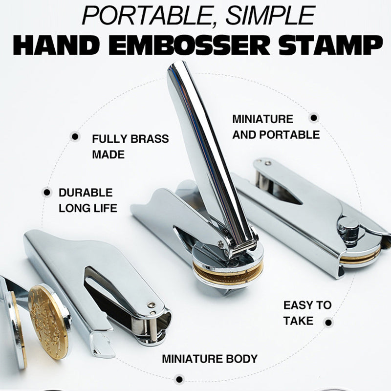 The Personalized Stainless Steel Embosser Stamp offers a high-quality solution for adding a custom, professional touch to your stationery. Crafted from durable metal, this embosser stamp is ideal for personalizing paper, napkins, invitations, envelopes, name cards, and more. Whether for business branding or personal projects, this tool allows you to create unique, embossed impressions with ease, making it a versatile addition to any creative setup.